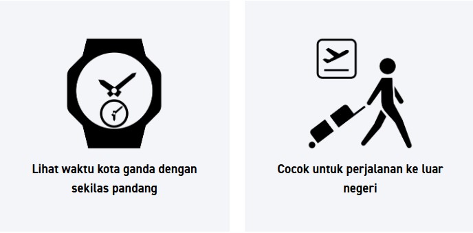 - 31 time zones (48 cities + coordinated universal time), daylight saving on/off, Home city/World time city swapping