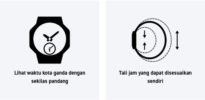 Fungsi kalkulator gadget orisinal dipadukan dengan casing persegi panjang dan tali jam berbahan logam untuk tampilan ala retro sejati. Jam tangan yang berfungsi sebagai penunjuk waktu sekaligus kalkulator ini dapat menangani komputasi 8 digit, stopwatch 1/100, dan alarm.